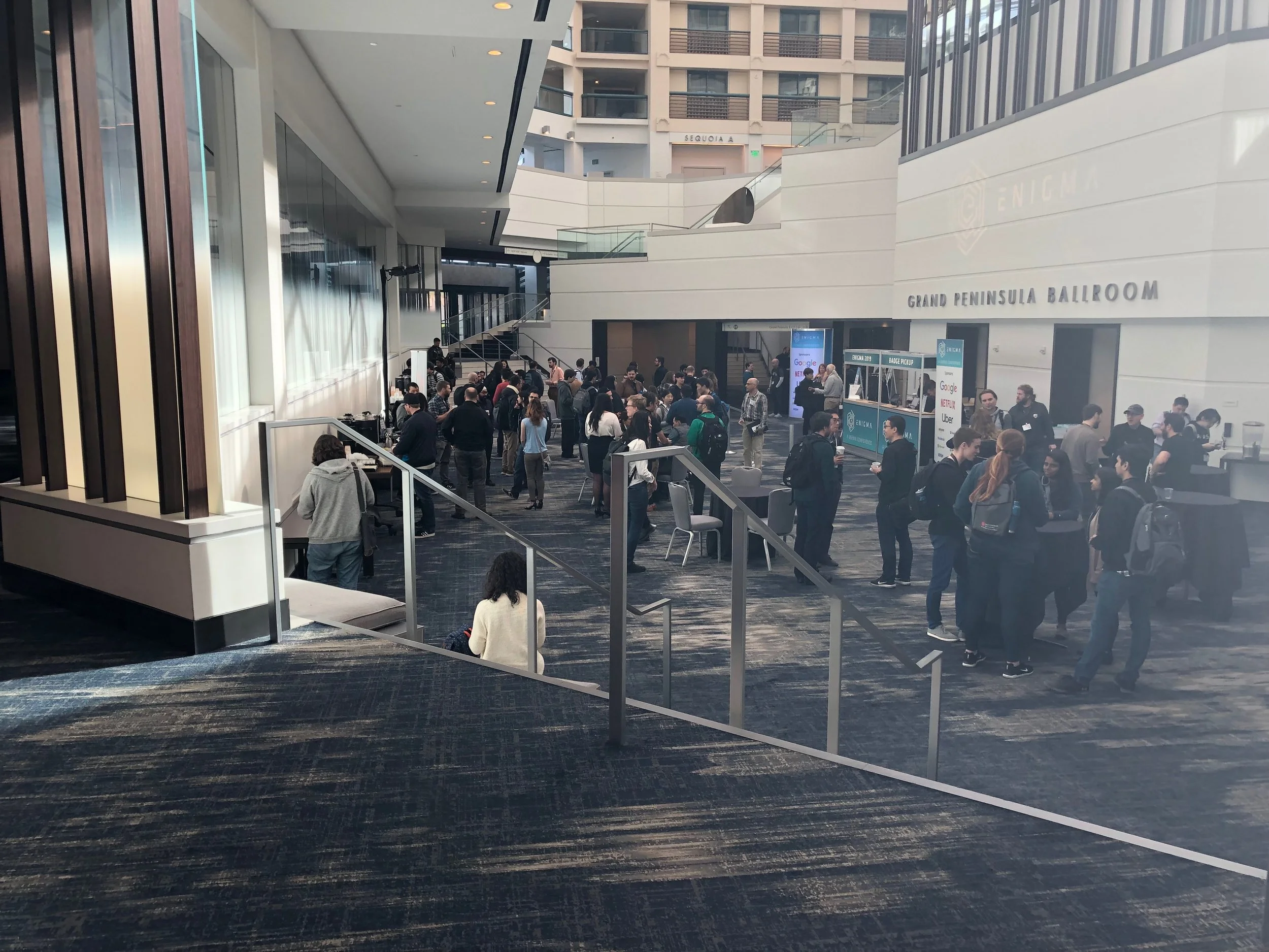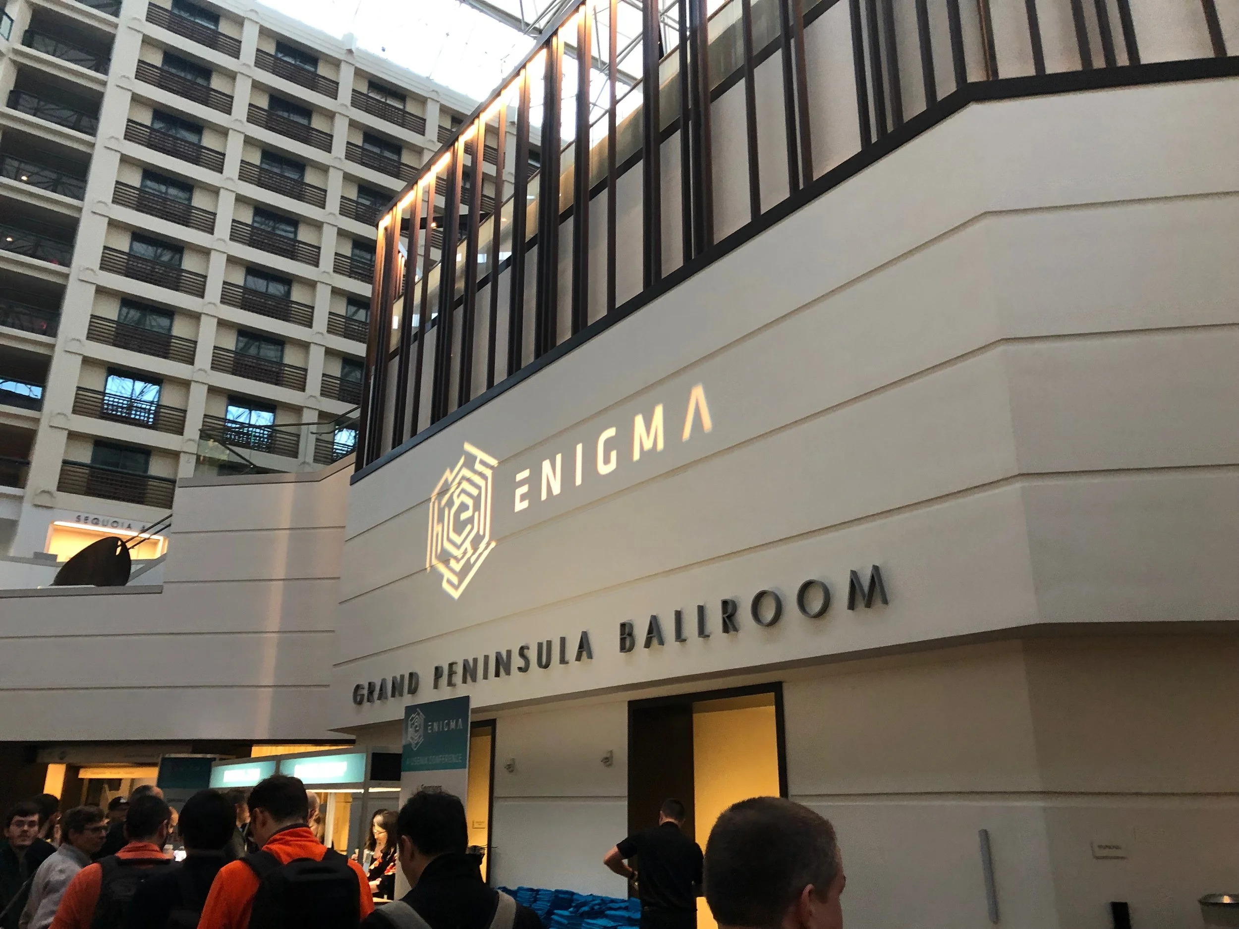 8:45am-5:30pm PT. The conference begins. A single-track conference, all talks at Enigma are 20 minutes long with 10 minutes of Q&A. On the first day there were 13 talks in the single track. All were excellent. The stand-outs for me were as follows: