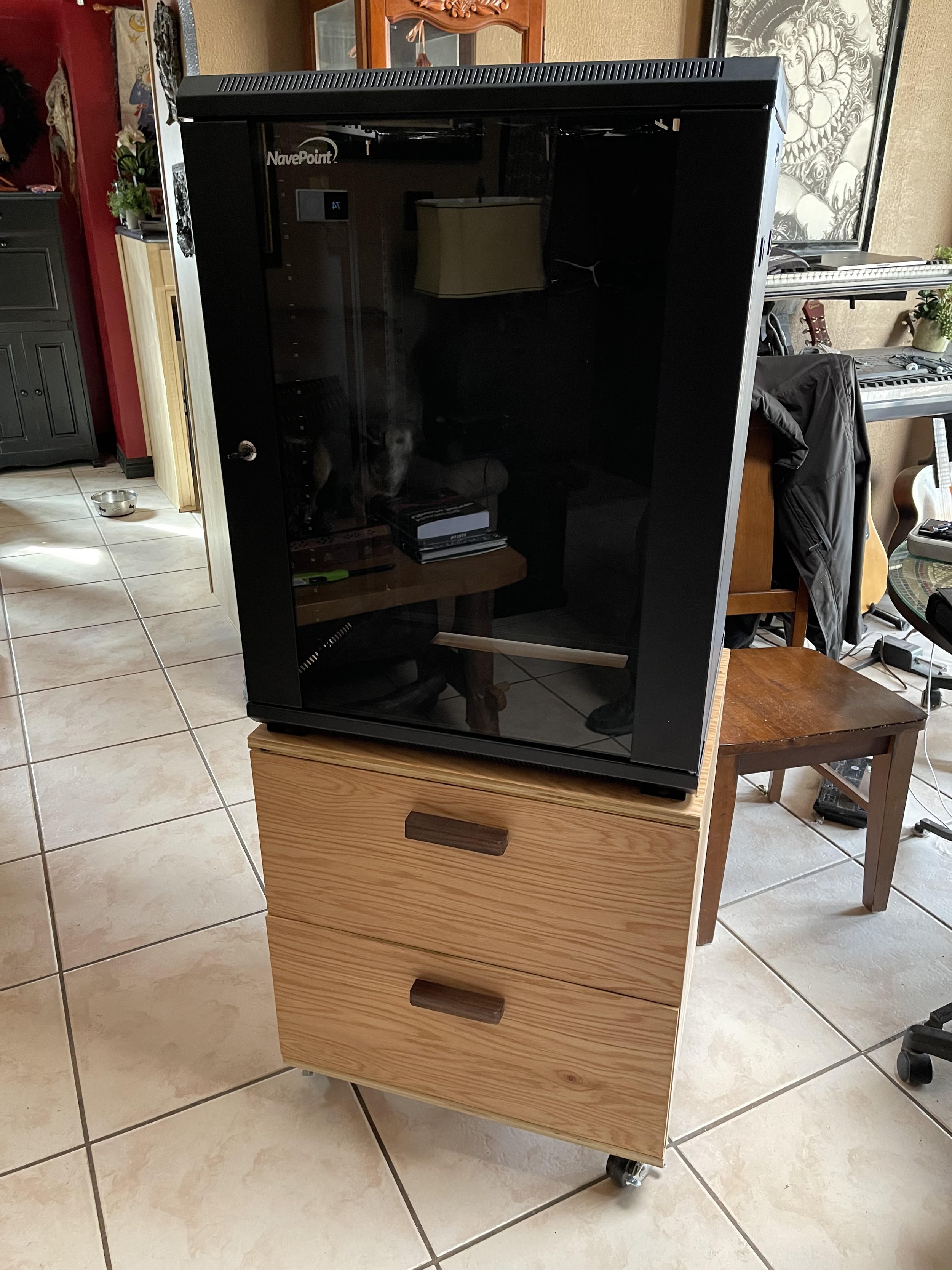 Networks grow as we add more devices, especially “smart” items, and for me it was looking like I needed a new rack. The old 6U rack quickly filled up, and I was in dire need of something new. The NavePoint rack is 15U, more than double the space of my old 6U rack. The 6U rack was wall-mounted and while I considered wall-mounting the NavePoint, I came to my senses and simply built a two-drawer cabinet on wheels so it is a bit more mobile. The new rack currently holds everything I need with a bit of room for expansion.