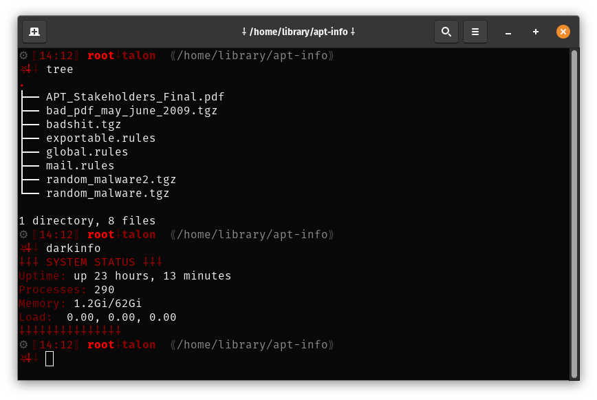I also wanted something that I (and possibly only I) thought looked cool. I was wanting to include various symbols and icons, and played around with choices. And I wanted the three themes to be pagan-based (for the personal daily driver), cyberpunk-based (for the multi-user scenario), and a somewhat mechanical yet dark and infernal kind of theme (for root).